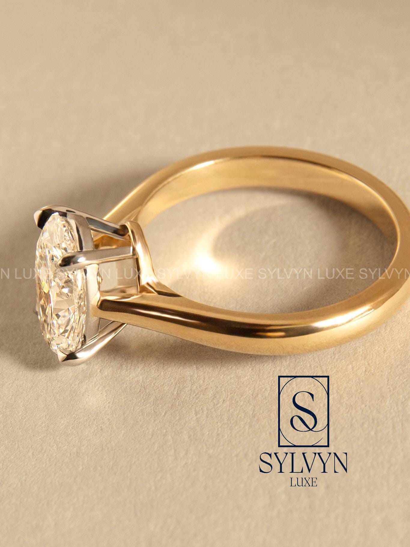 Oval Cut Lab Grown Diamond Engagement Ring, Classic Solitaire Solid Yellow Gold Prong Setting Luxury Proposal Ring IGI Certified