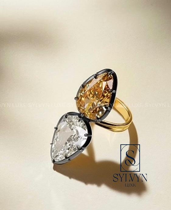 3TCW Toi Et Moi Pear Diamond Ring Lab Grown White & Yellow Diamond Engagement Ring Unique Anniversary Gift for Wife Girlfriend