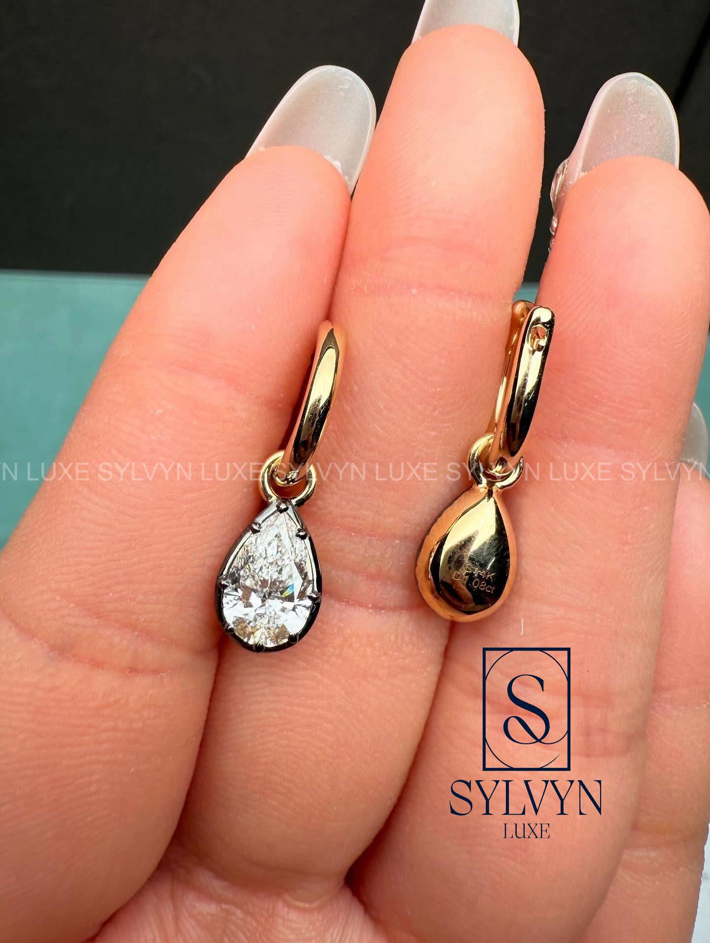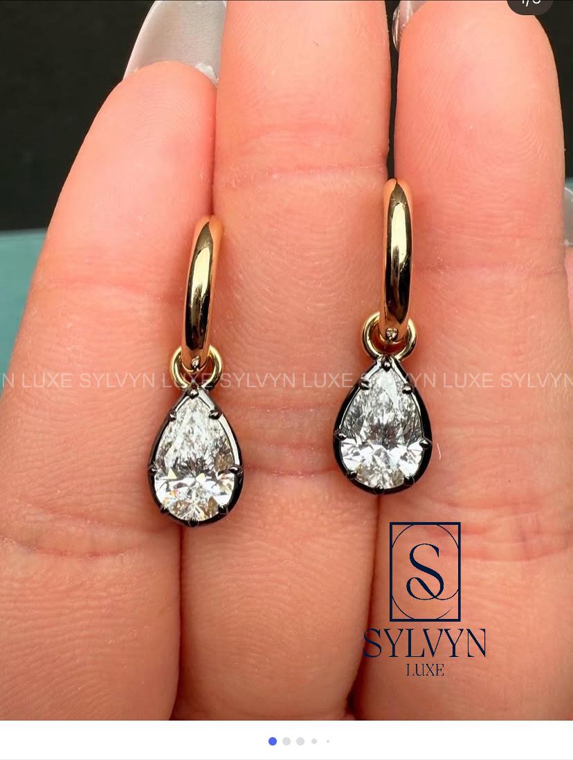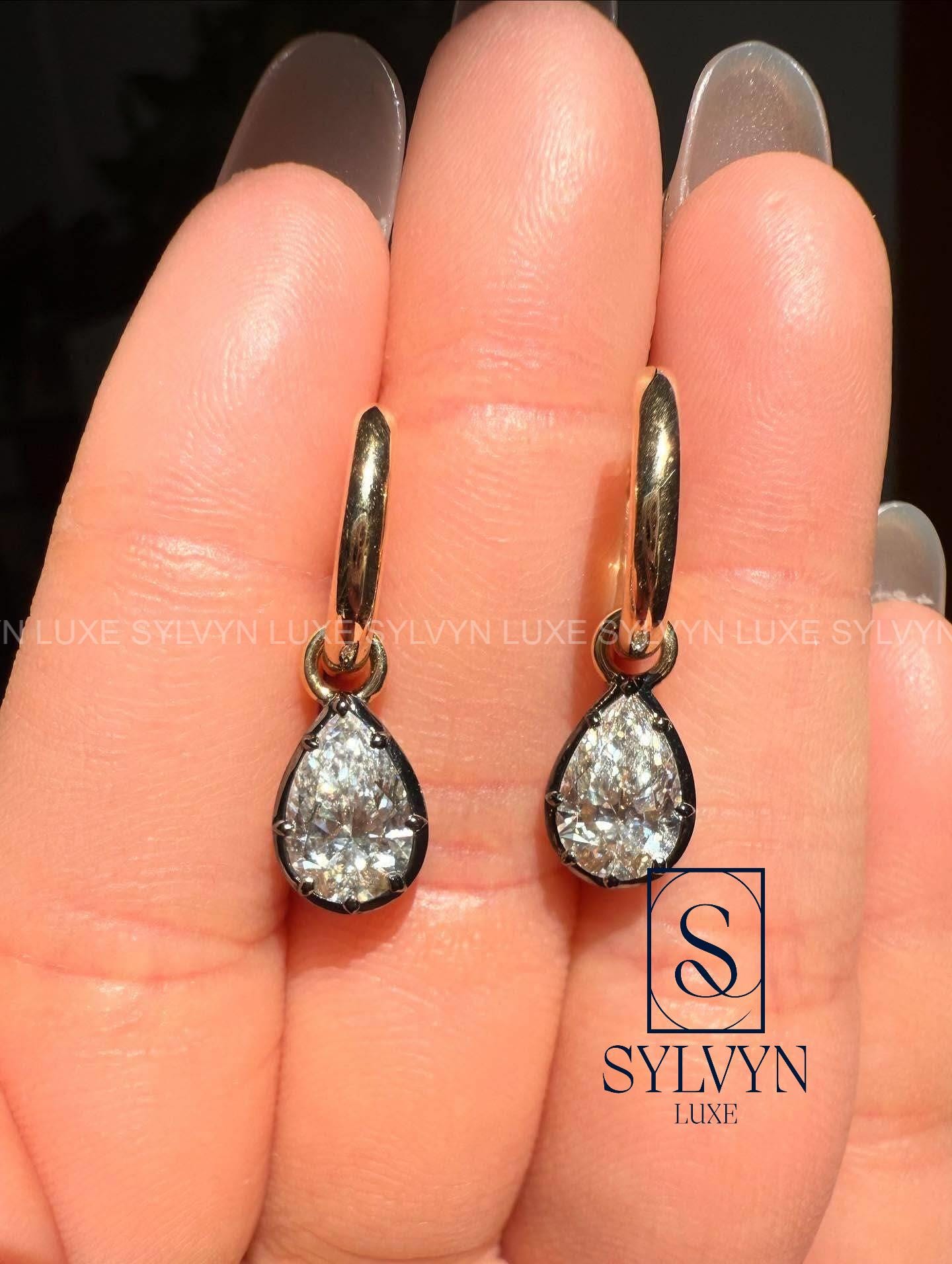 Pear Diamond Drop Earrings Lab Grown Diamond Hoop Earrings Minimal Luxury Anniversary Gift for Wife Girlfriend IGI Certified