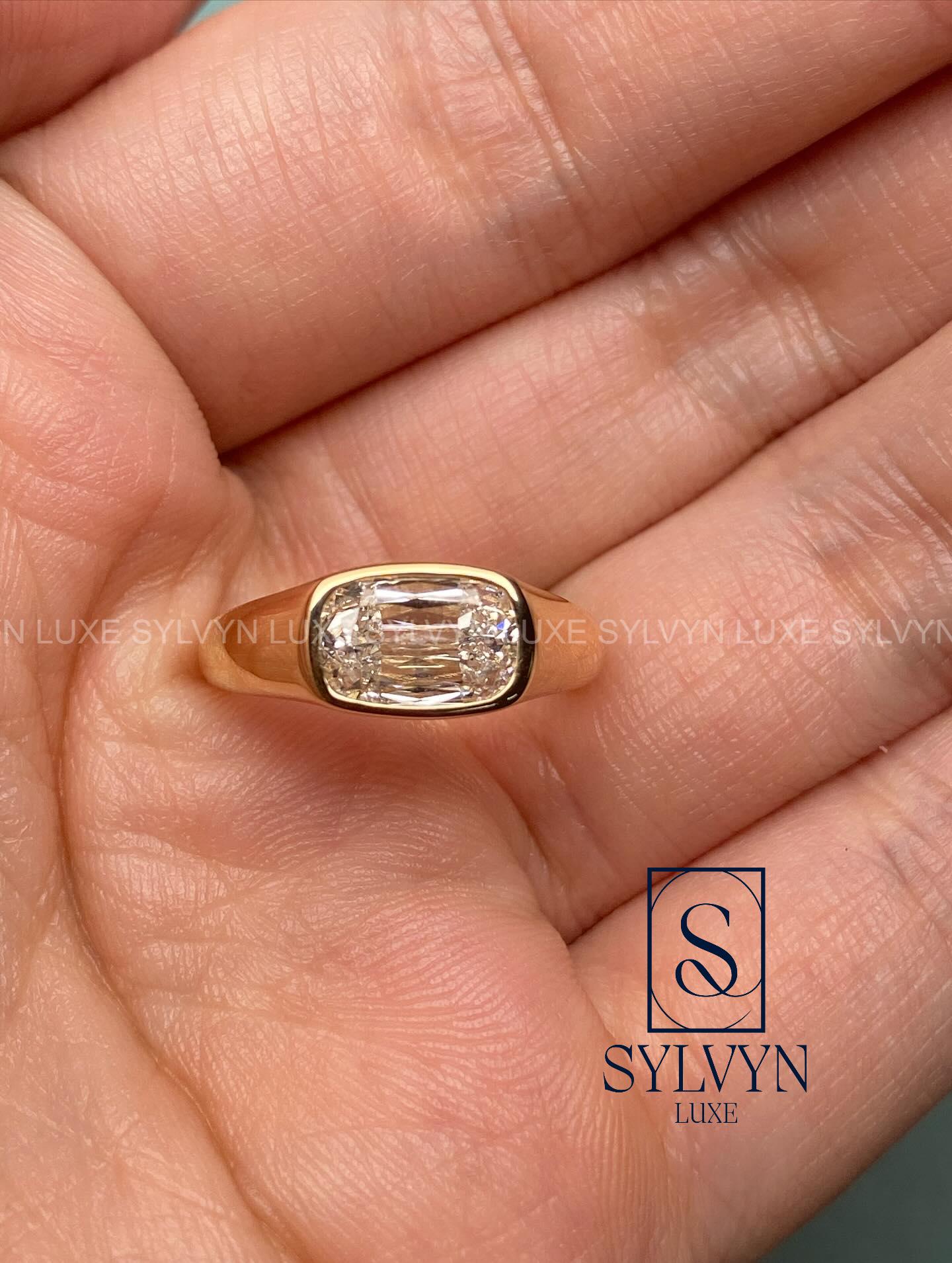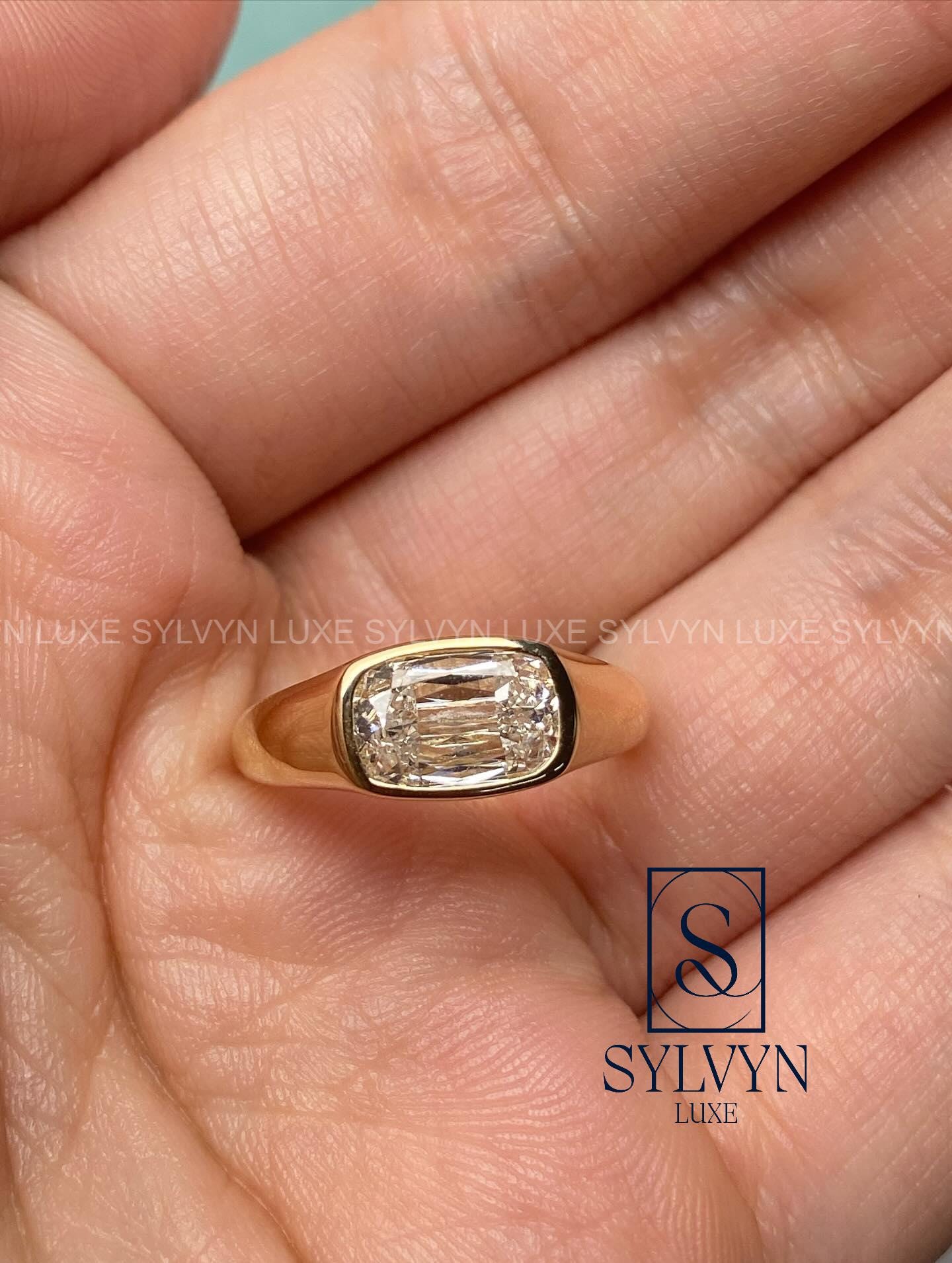 2CT Bezel Set Old Mine Cushion Cut Lab Grown Diamond Ring, Minimal Gold Engagement Ring, Modern Anniversary Gift for Her IGI Certified