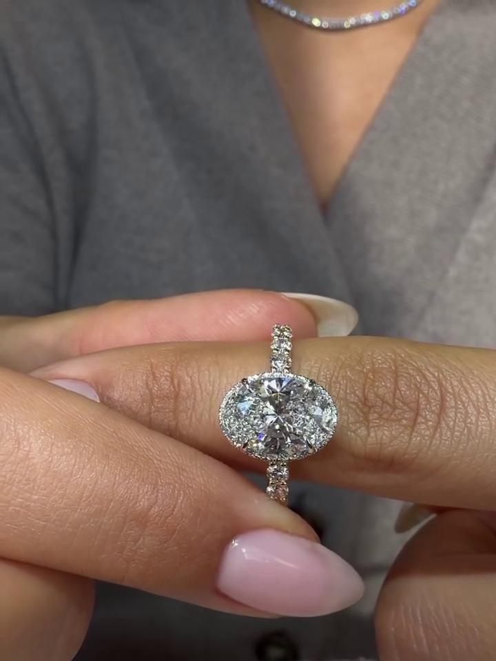 Oval Cut Lab Grown Diamond Halo Engagement Ring, Pavé Band Oval Solitaire Ring, Vintage Inspired Proposal Ring IGI Certified