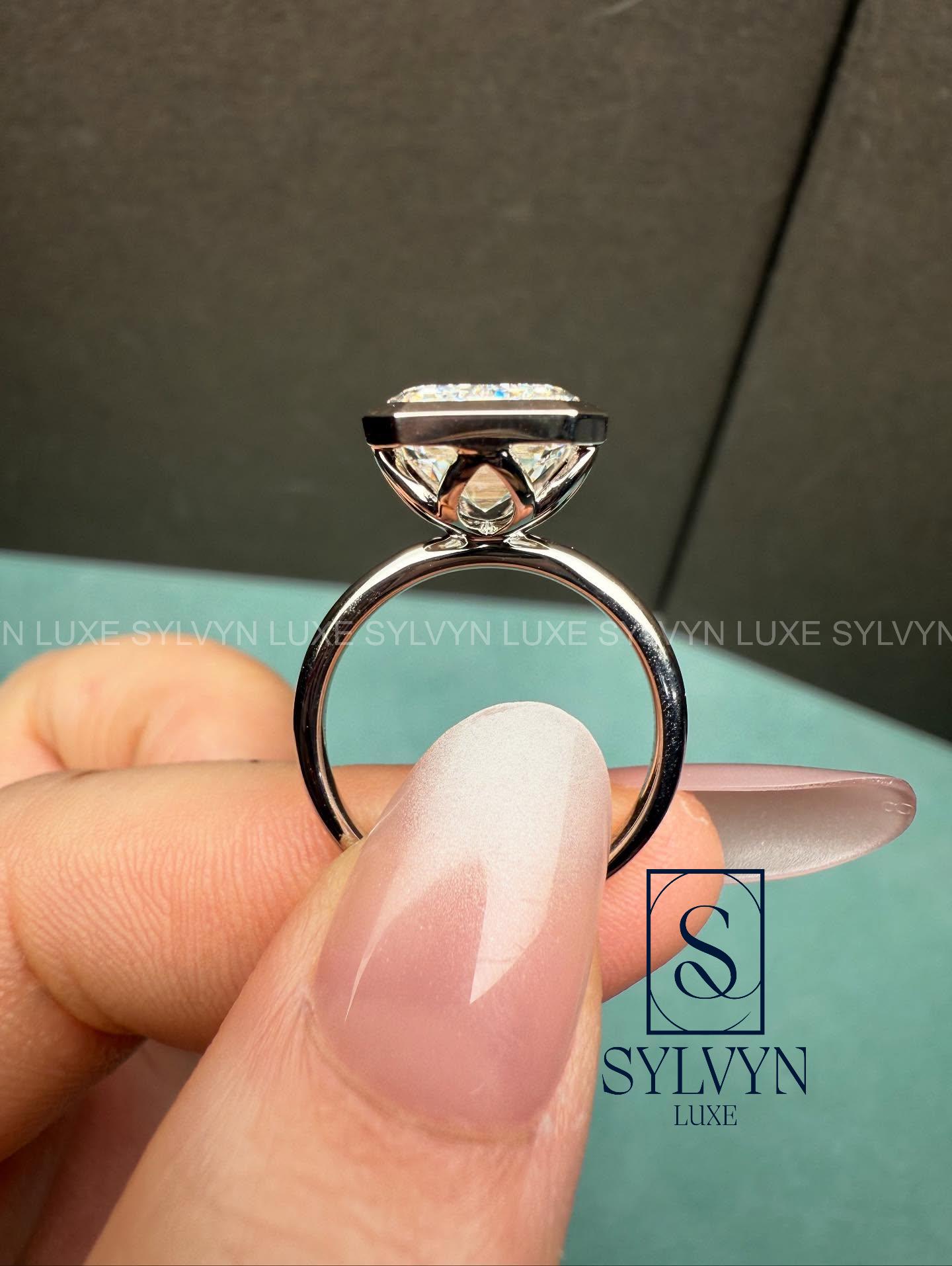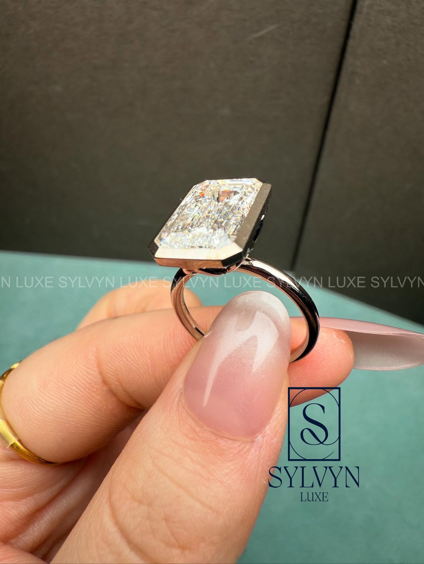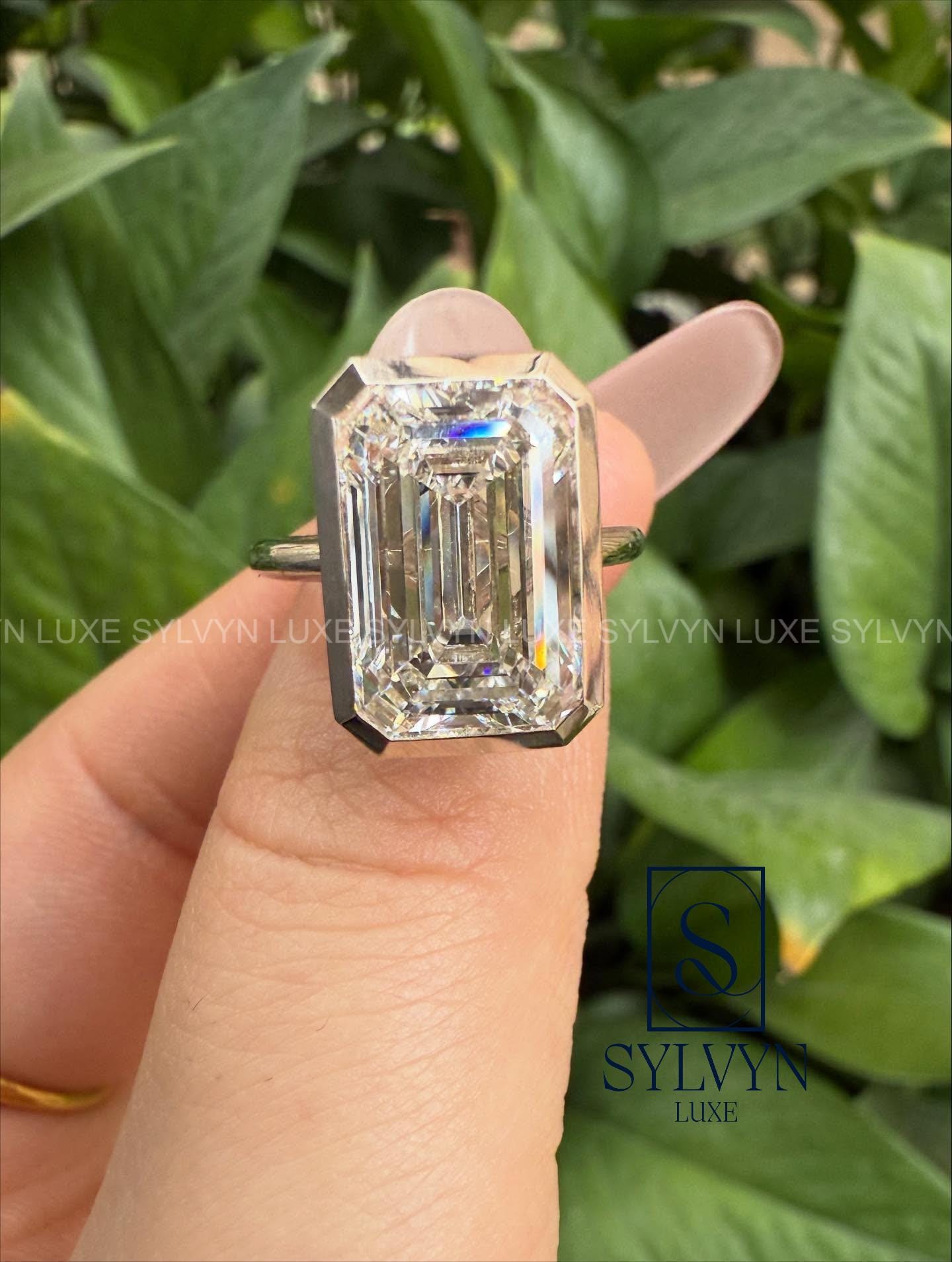 Bezel Set Emerald Cut Lab Grown Diamond Ring, Gold Engagement Anniversary Ring, IGI Certified, Gift For Her, Valentine's Day Gift