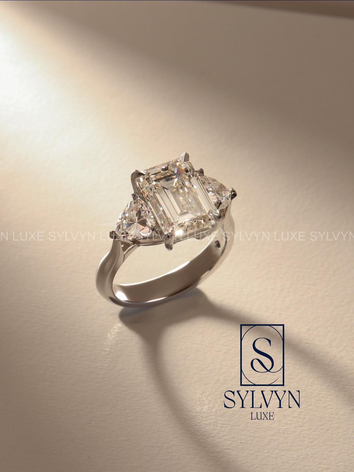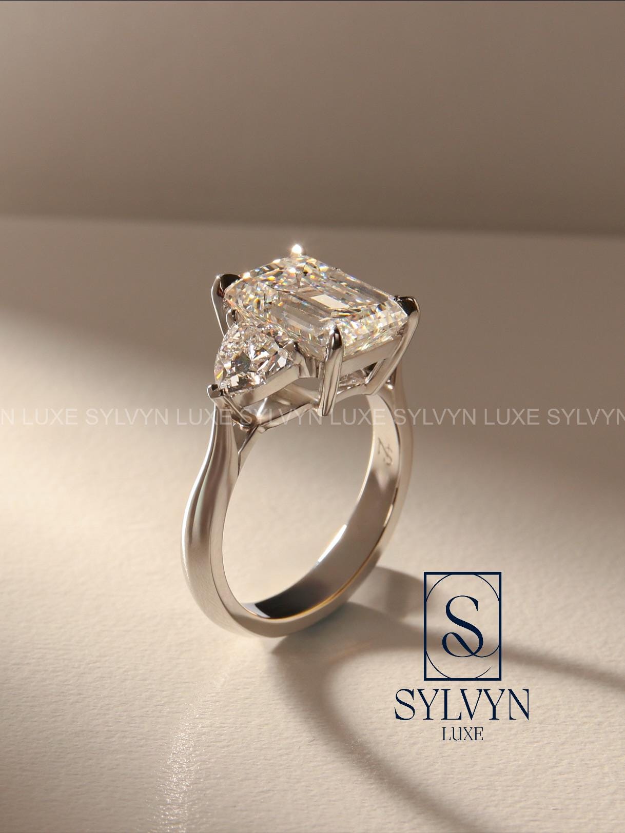 Emerald Cut Lab Grown Diamond Engagement Ring | Trillion Side Stones