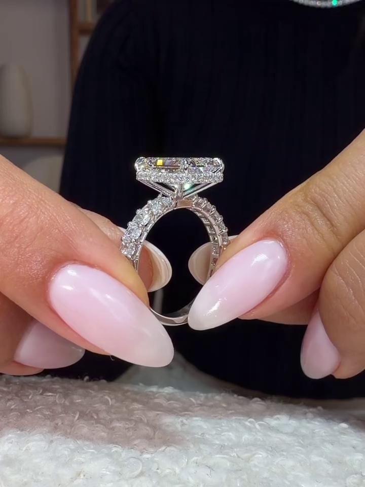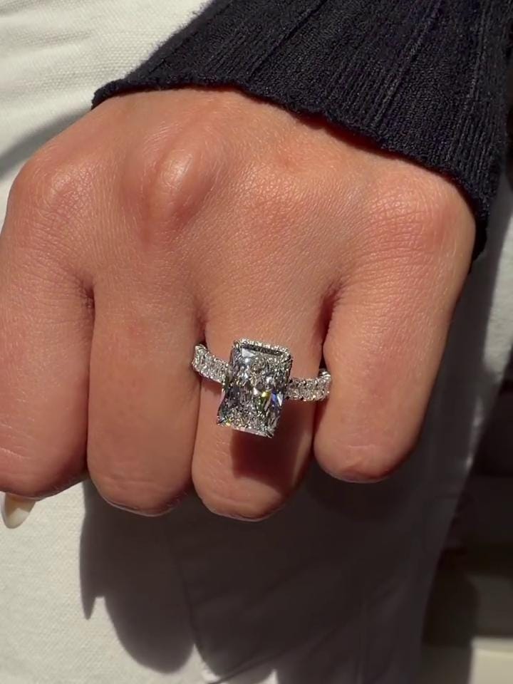 3CT Radiant Lab Grown Diamond Engagement Ring, Pavé Band, Vintage Solitaire