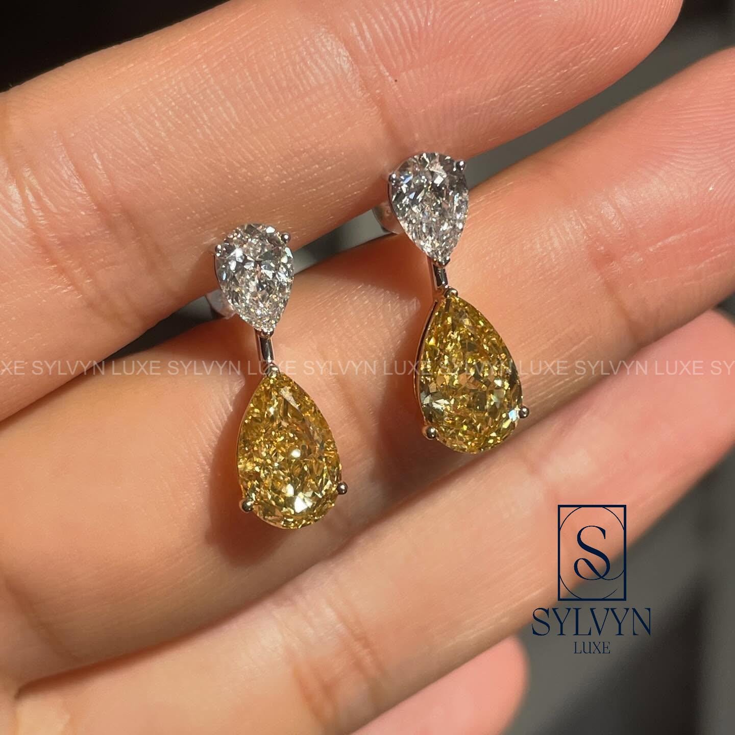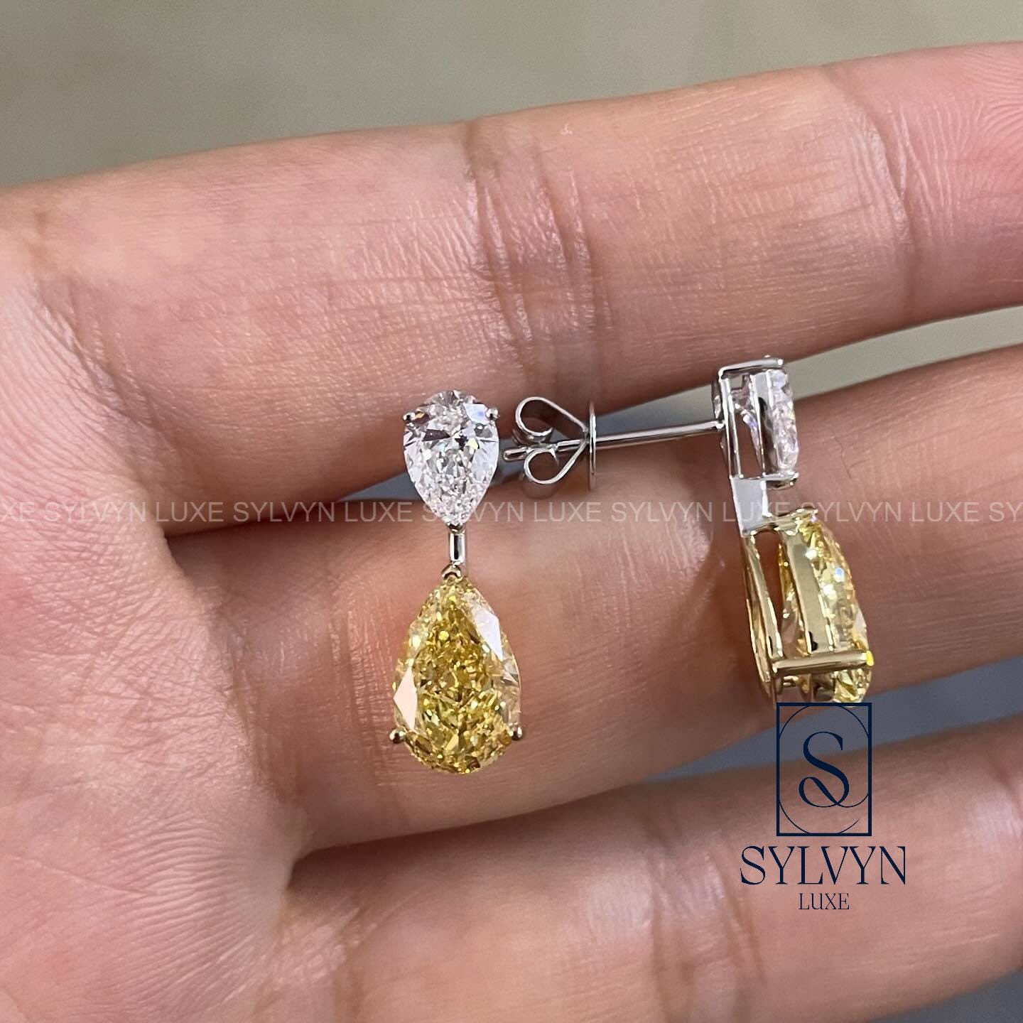 3TCW Pear Cut Lab Grown Diamond Drop Earrings | Two Tone Gold Dangle Earrings