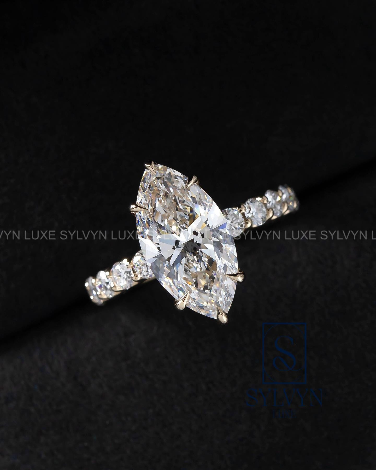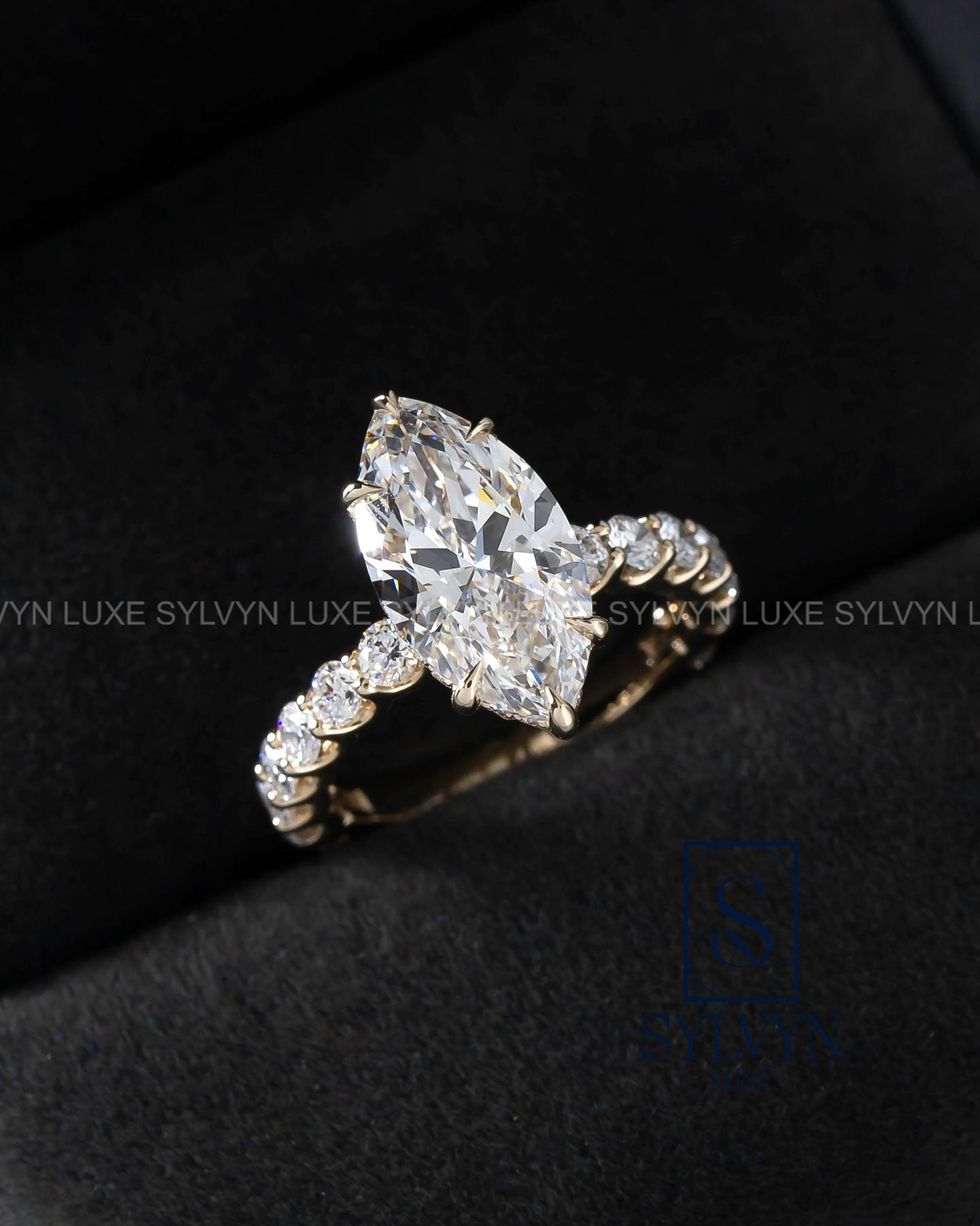 Marquise Cut IGI Certified Diamond Engagement Ring, Lab Diamond, Yellow Gold Round Side Stone Ring, Gift For Her, Pavé Band Solitaire Ring