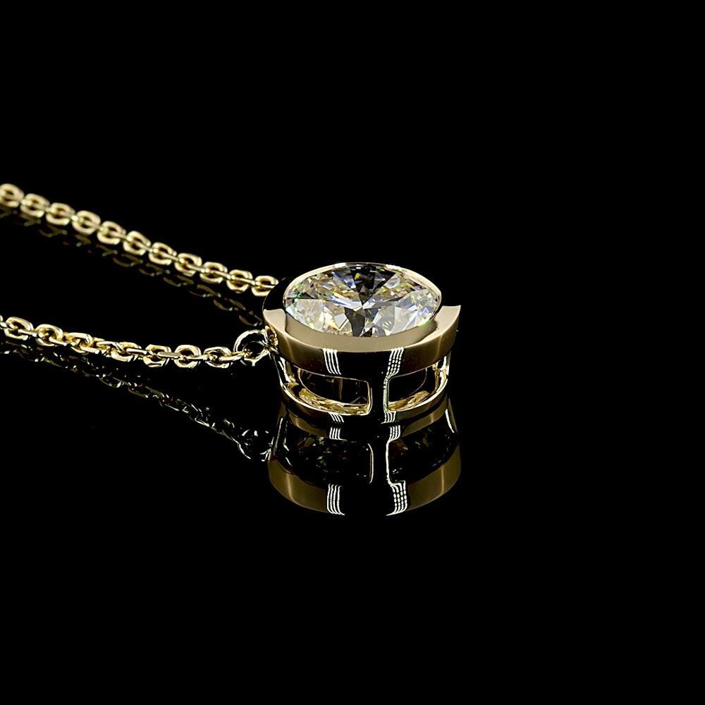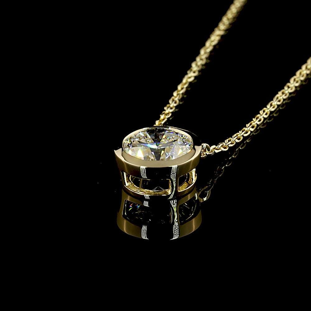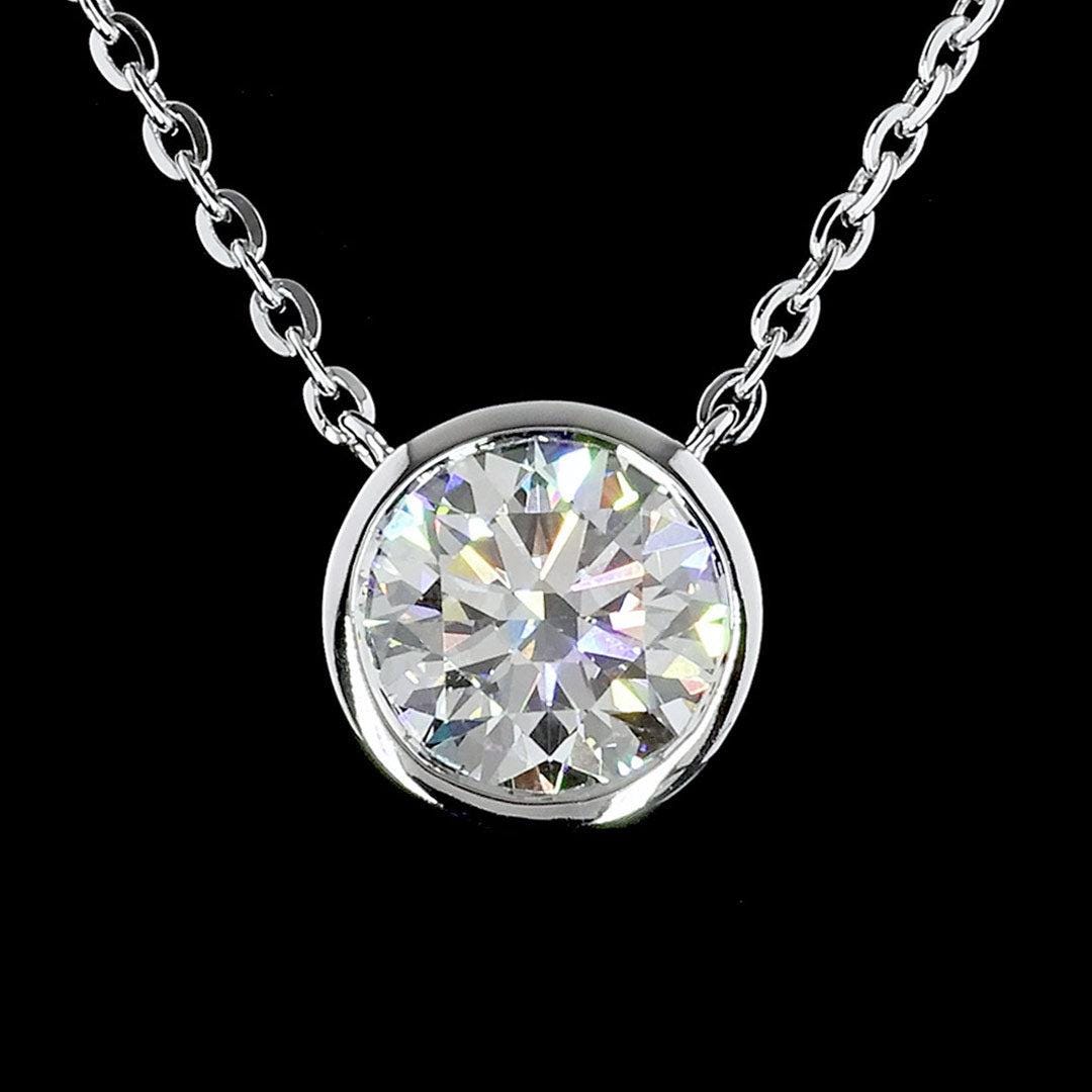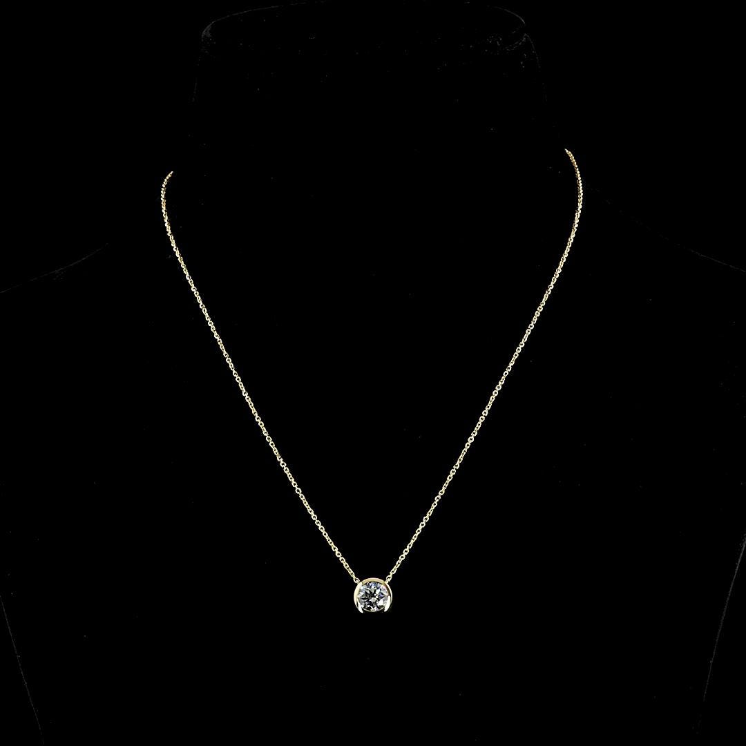 Round Cut Lab Grown Diamond Solitaire Necklace Silver, Solid Gold: Yellow Gold Bezel Setting