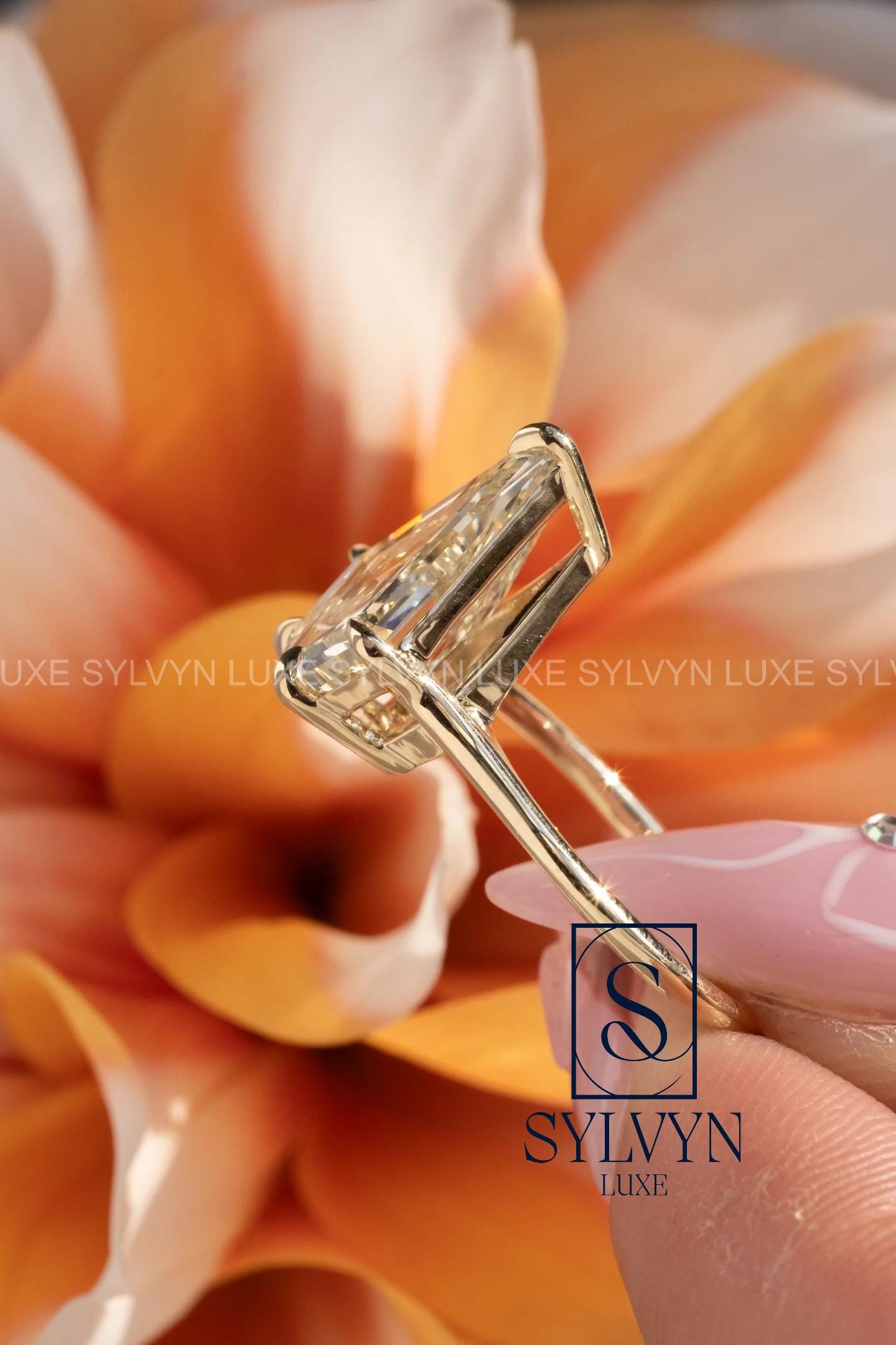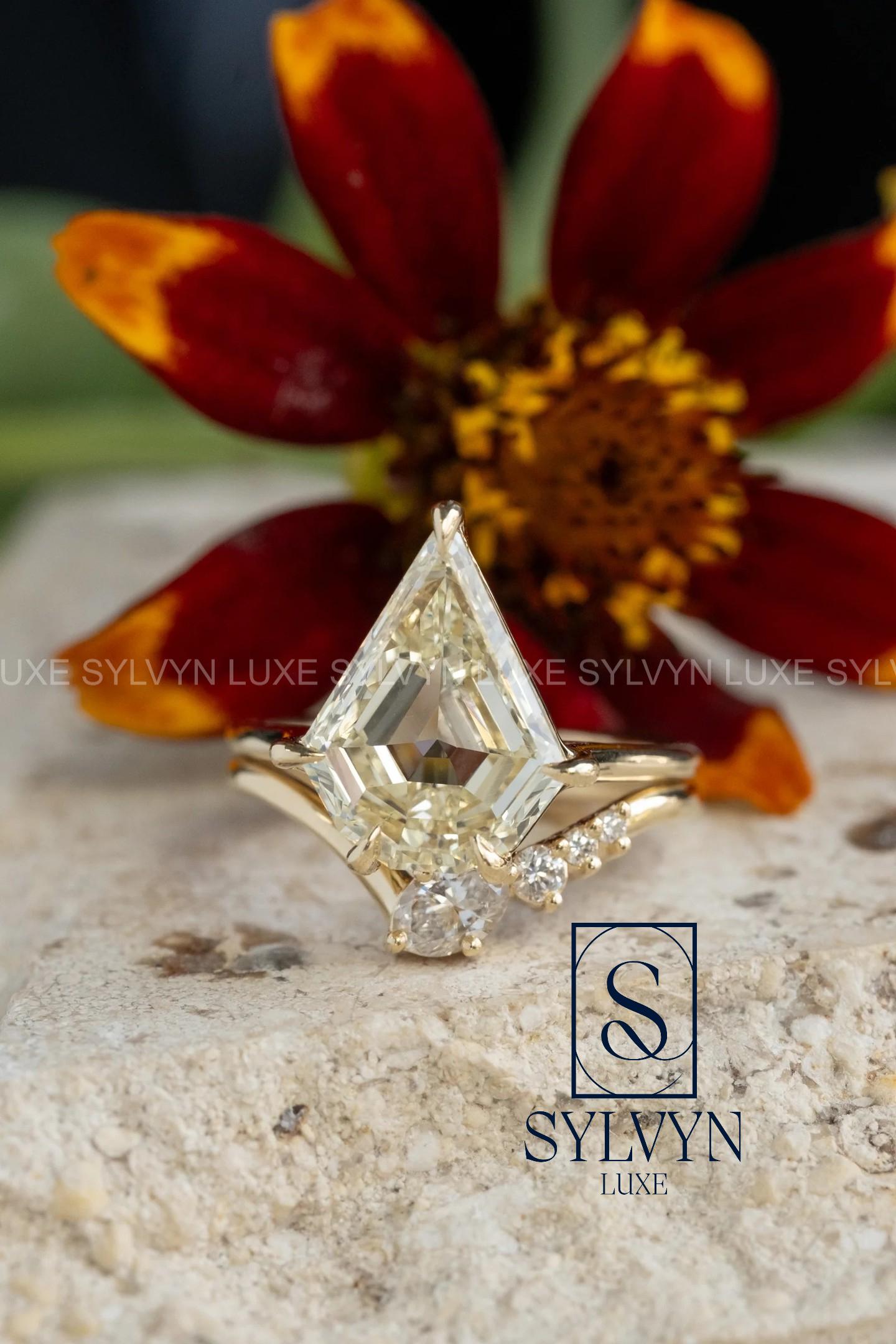 Yellow Shield Cut Lab Grown IGI Certified Diamond Engagement Ring, Unique Geometric Diamond Ring Set | Gift For Her | Valentine's Day Gift