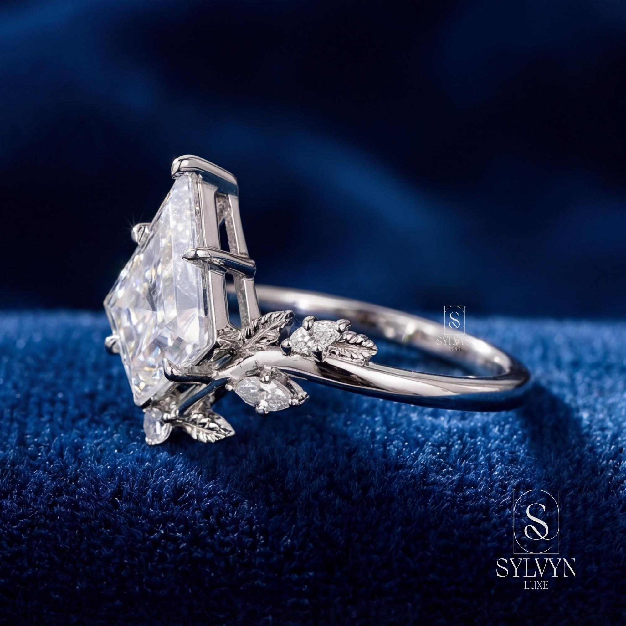 2.2CT Shield Cut Lab Grown Diamond Engagement Ring, White Kite Cut Diamond Nature Inspired Ring with Leaf Accents, Gift For Her,Elegant Ring