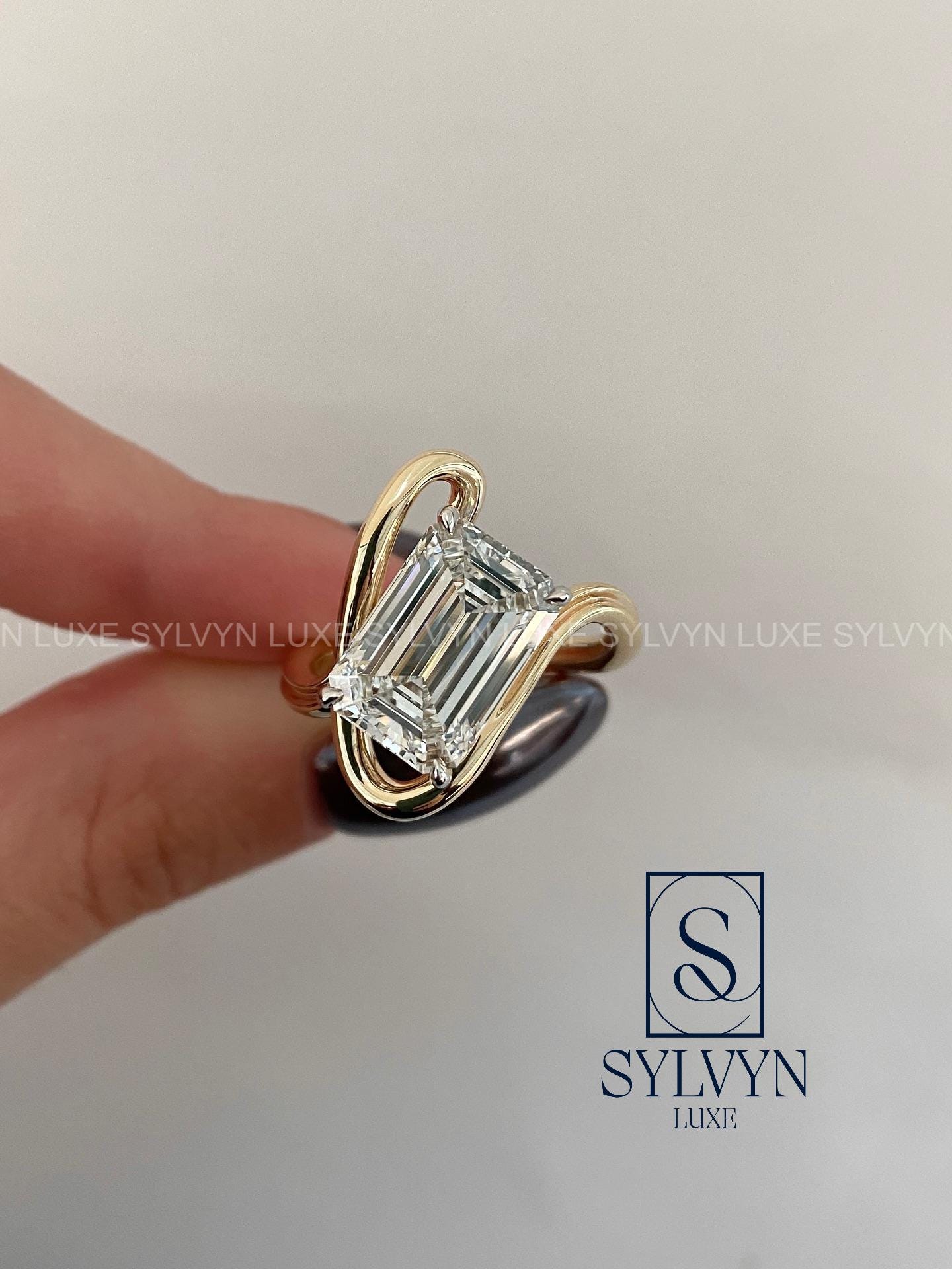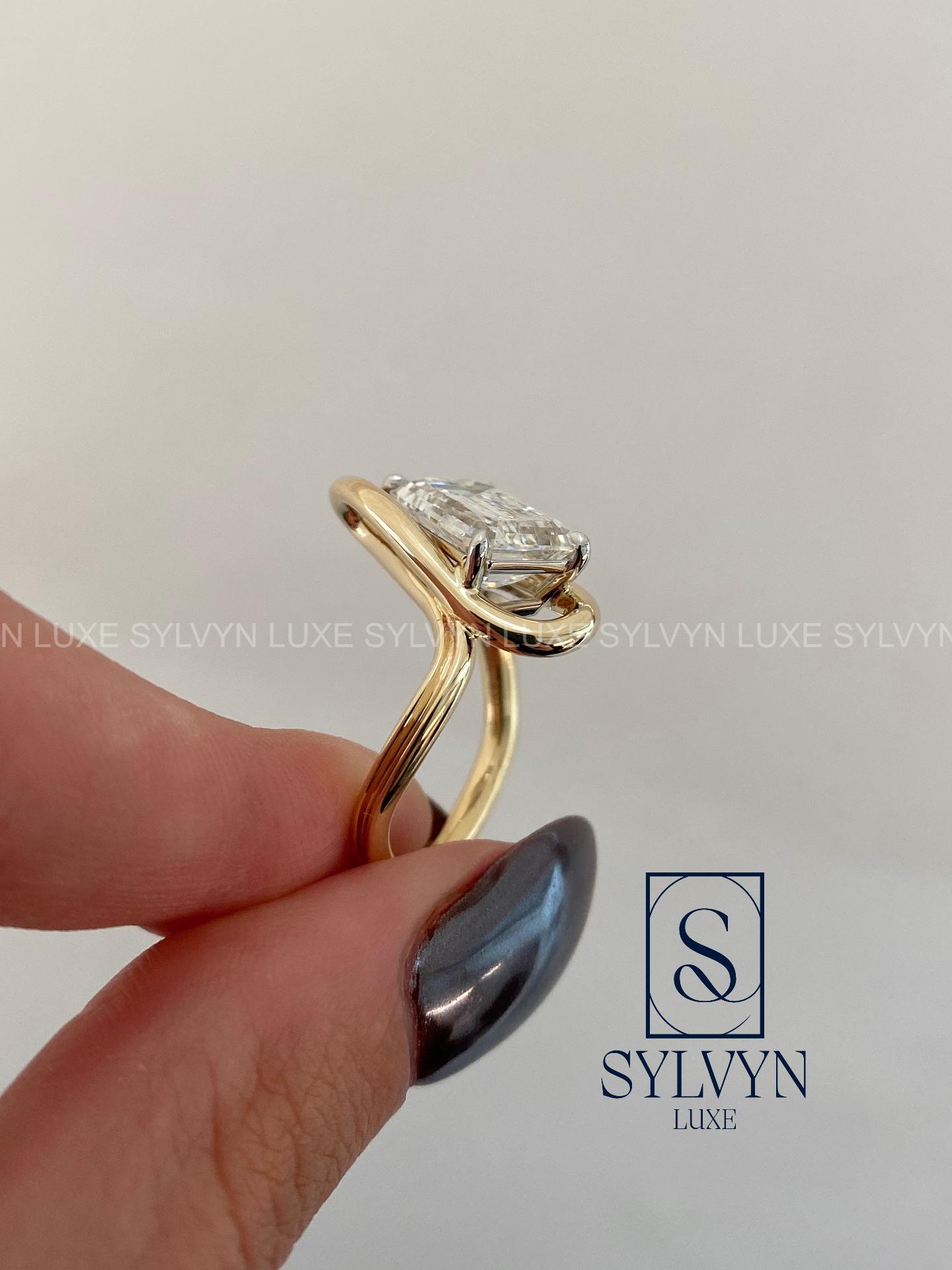 2CT Emerald Cut Lab Grown Diamond Engagement Ring, Modern Crossover Gold Ring IGI Certified Diamond Engagement Ring, Gift For Her