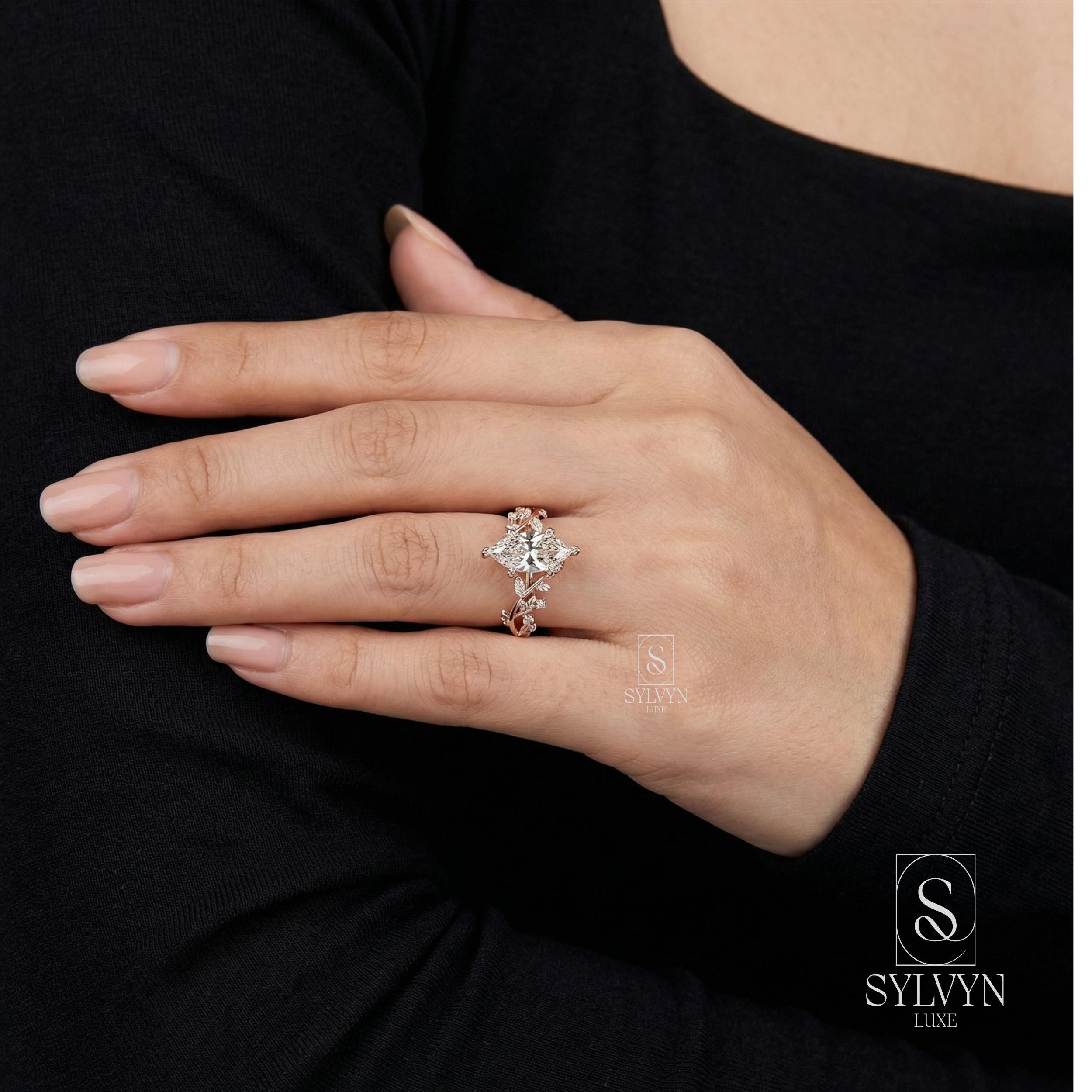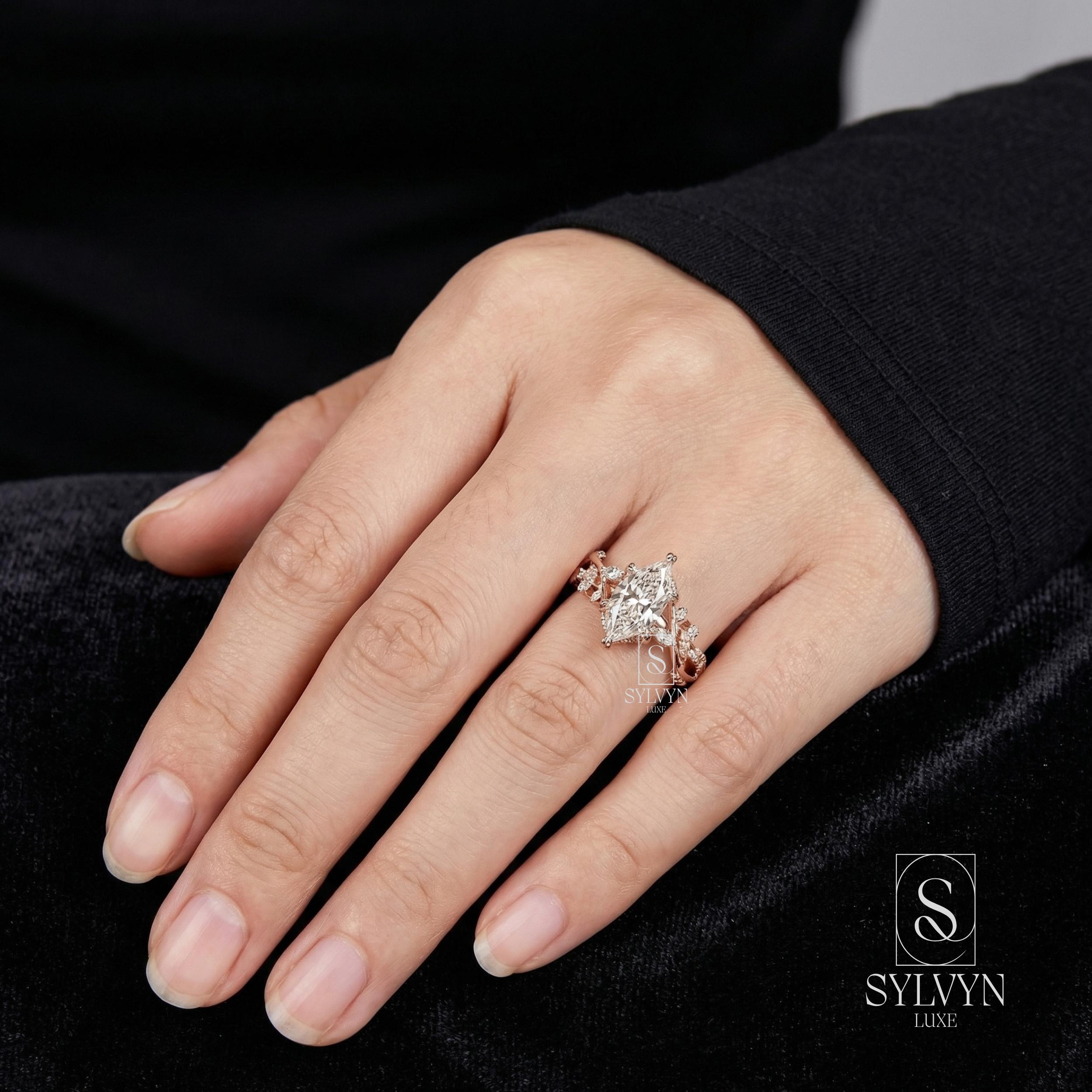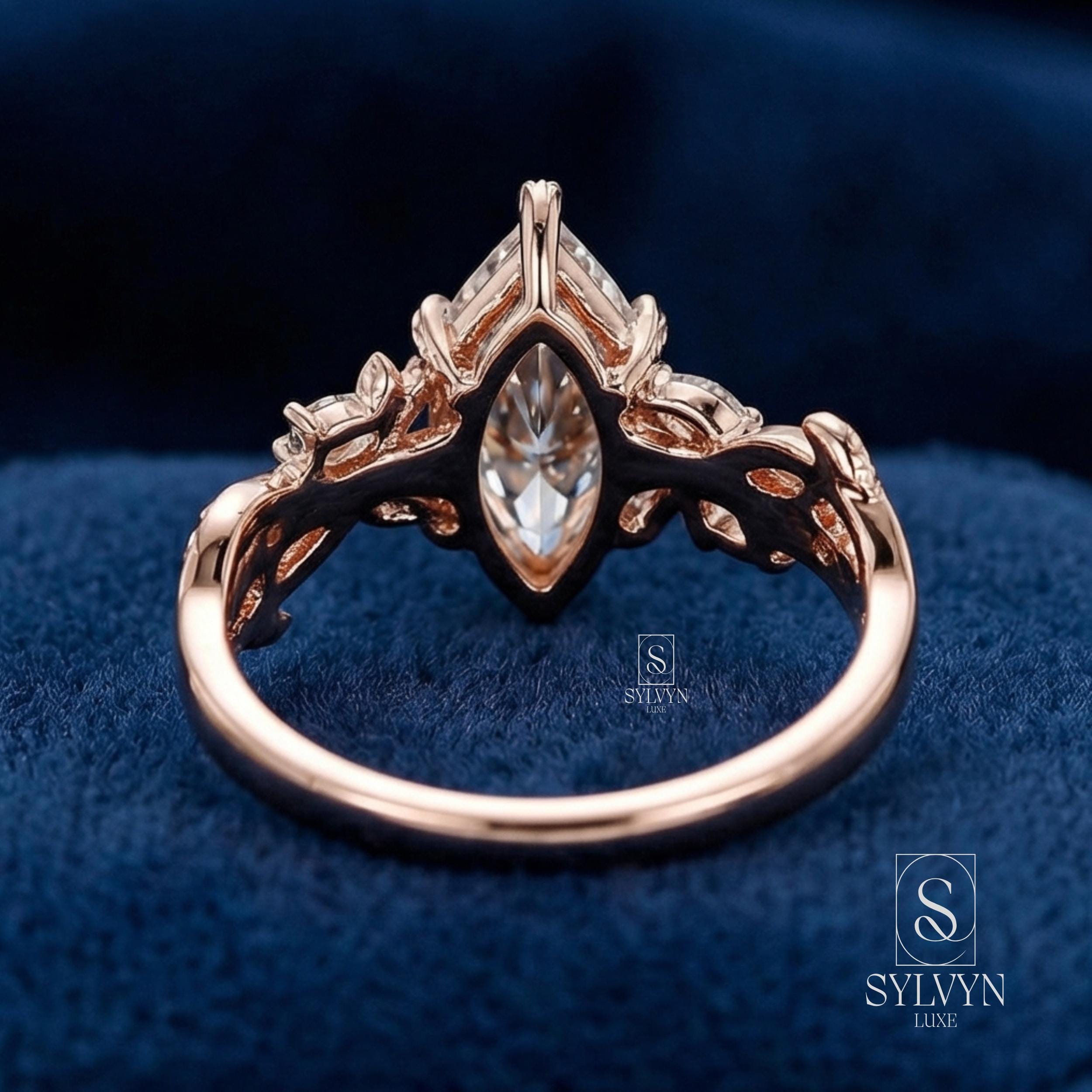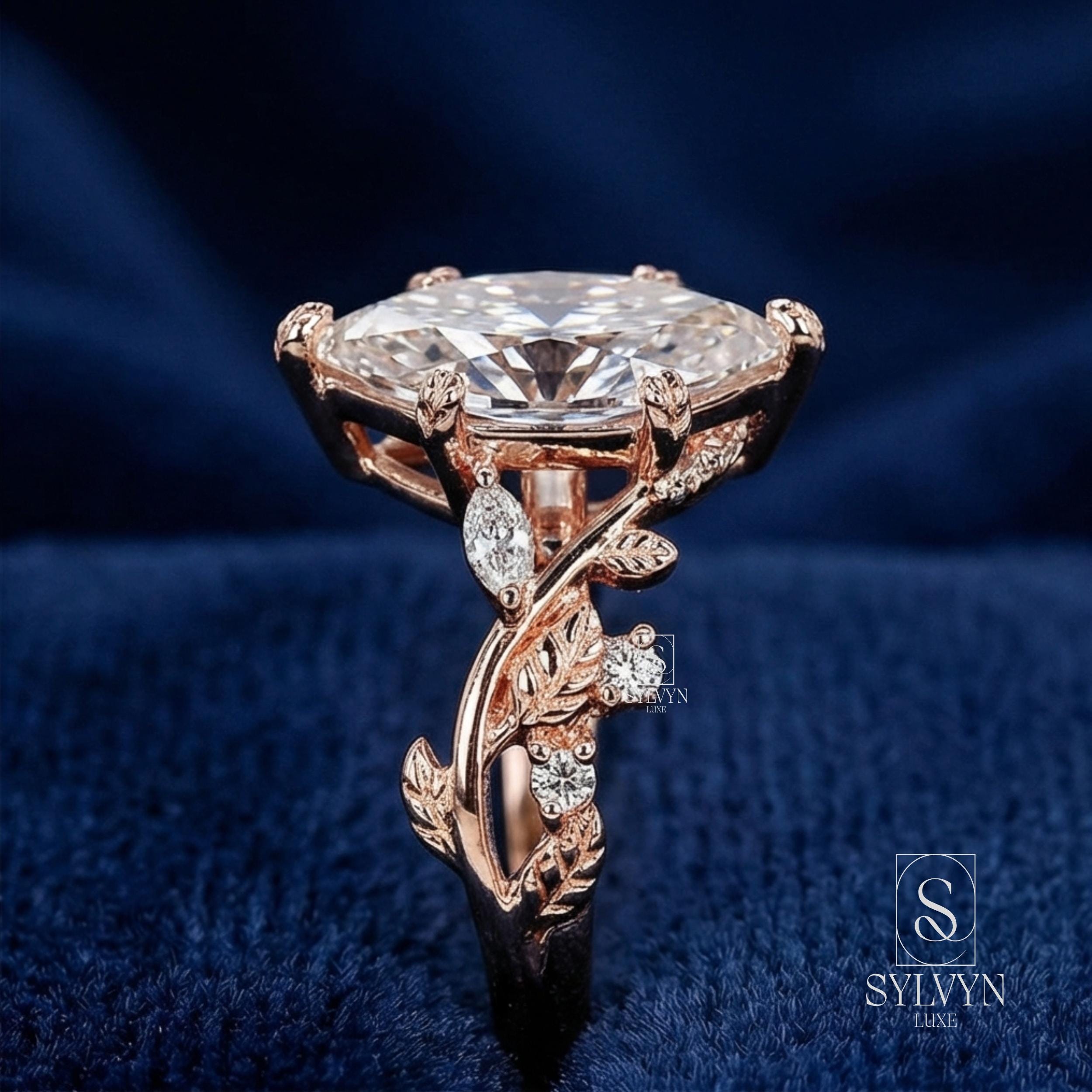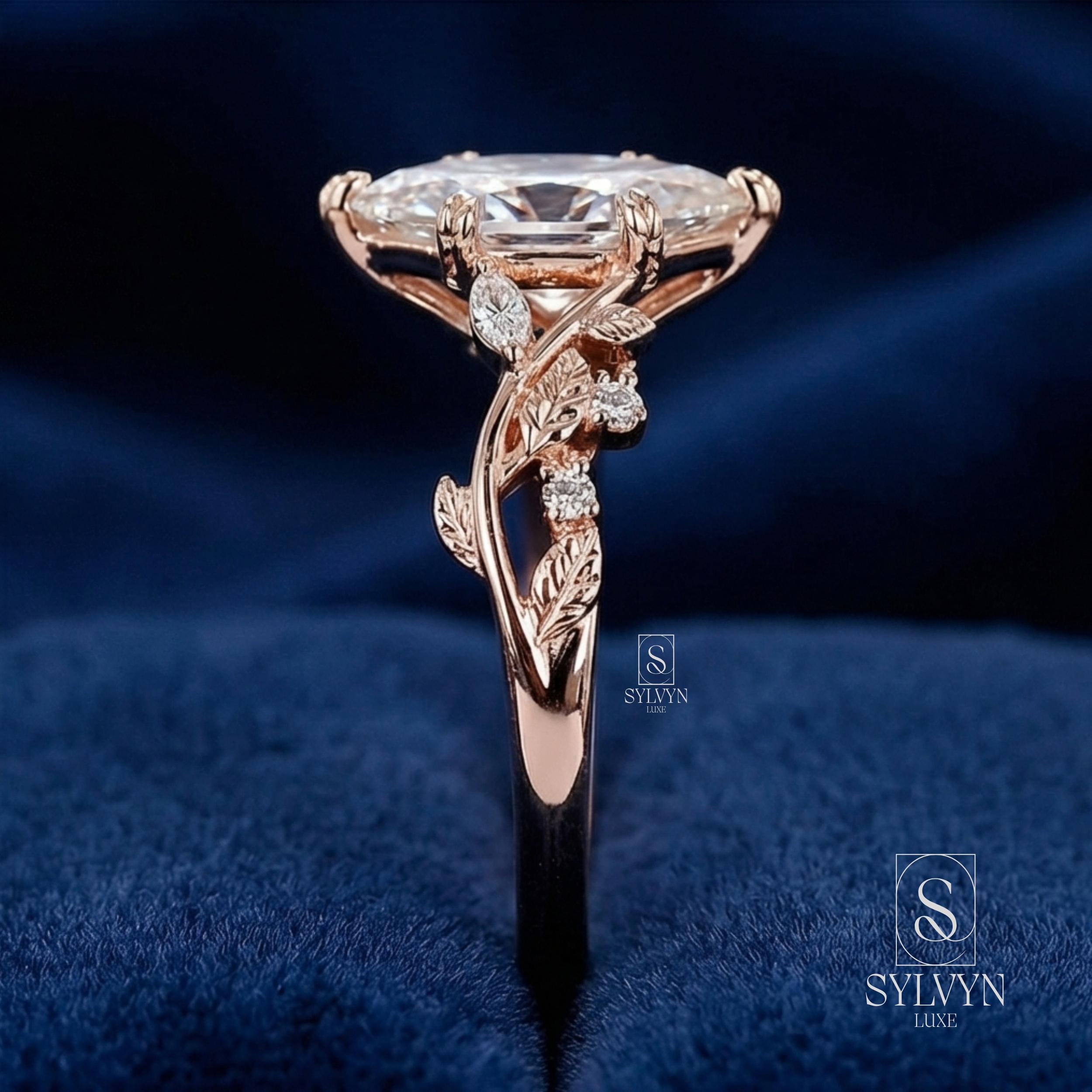 Marquise Cut Lab Grown Diamond Engagement Ring in Rose Gold | Vintage Floral Vine Ring with Leaf Details |Unique Nature Inspired Bridal Ring